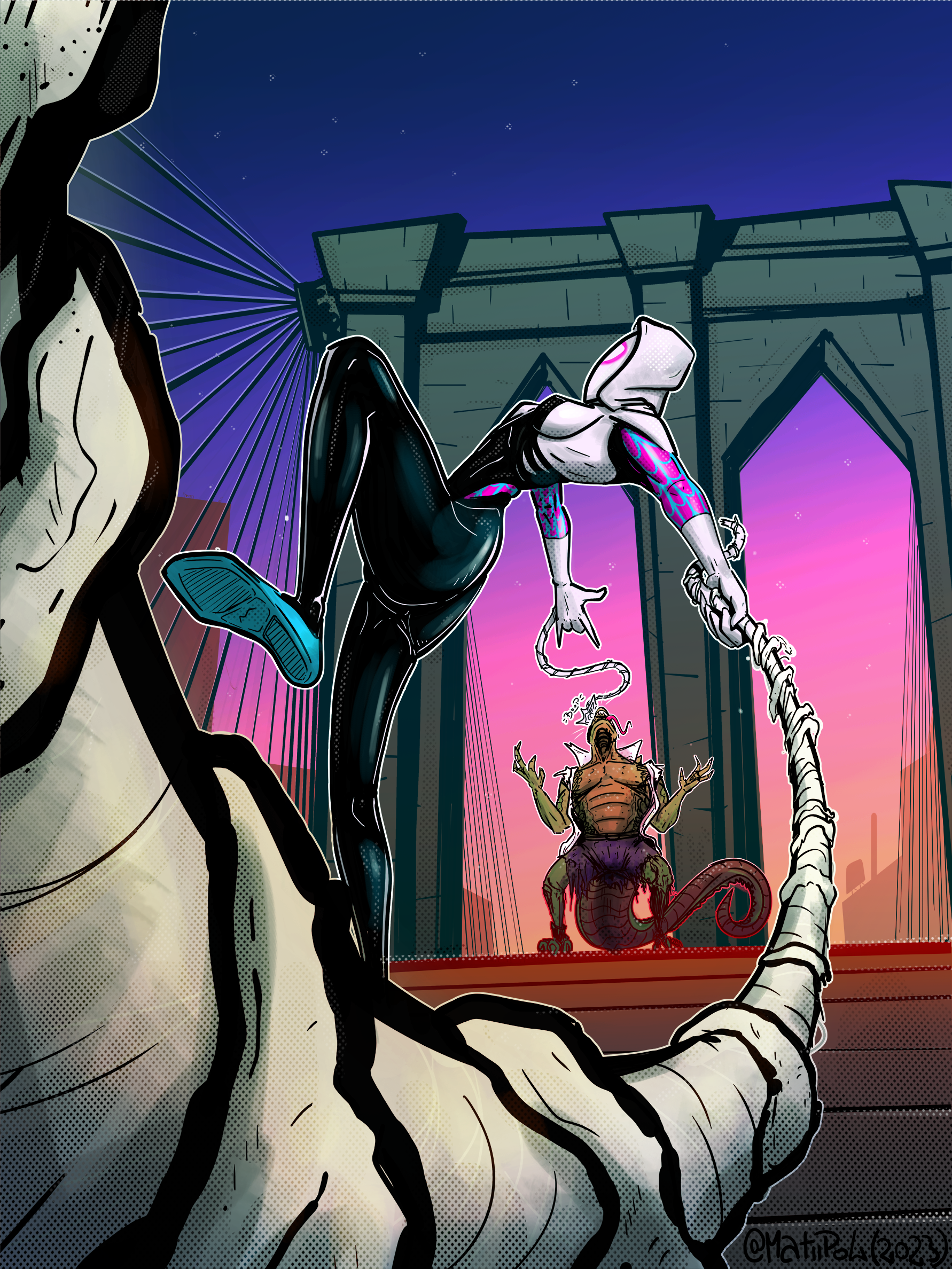 spidergwen fighting the lizard